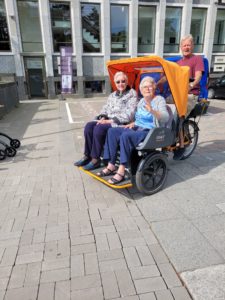 Sinds kort heeft dagbesteding ’t Trefpunt van Welzijn Rijswijk een mooie samenwerking met Stichting Fietsen voor Leven. Dankzij deze samenwerking kunnen bezoekers van ’t Trefpunt deelnemen aan begeleide fietsuitjes op duo-fietsen en riksja’s.